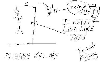 "Well, thank fucking God. Look, Fraser, I agree decorating should be a joint enterprise, but I was kind of hoping for a design scheme that was a little lighter on whalebone and, uh, dementia. I mean, I don't know much about art but I know what I like, and I am telling you right now that if I have to look at that bear sculpture for one more minute, I'm gonna go off my conk, okay? Can't we have, like, a painting of some nice snow or something that won't give me nightmares?"