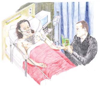 "Mavis, I’ve got an adult male, 29, 150 pounds. One day history of fever to 105, stiff neck." Reaching for a small light he peeled back and eyelid and shone it into the kid’s eyes. Blair groaned painfully. "Photophobia; nausea and emesis times three; temperature 105; pulse 120; respirations 35; blood pressure 100/60 and a GCS 2-4-4. Sat 98% on three litres via nasal cannula. I.V. placed."